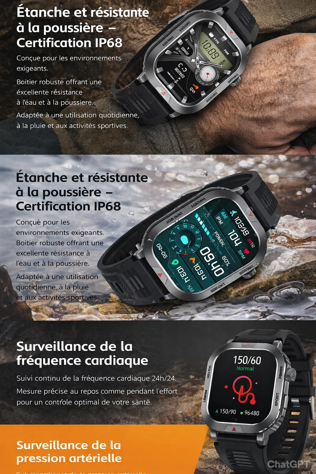 - Bracelet confortable et ajustable